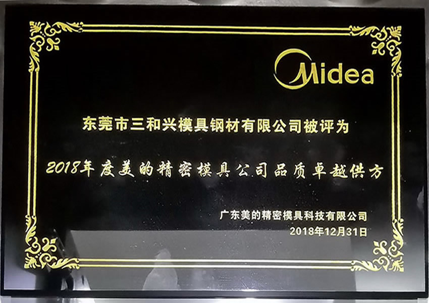 美的品質(zhì)卓越供方證書(shū)