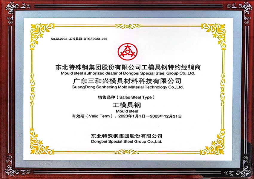 東北特鋼特約經(jīng)銷(xiāo)商證書(shū)-廣東2023